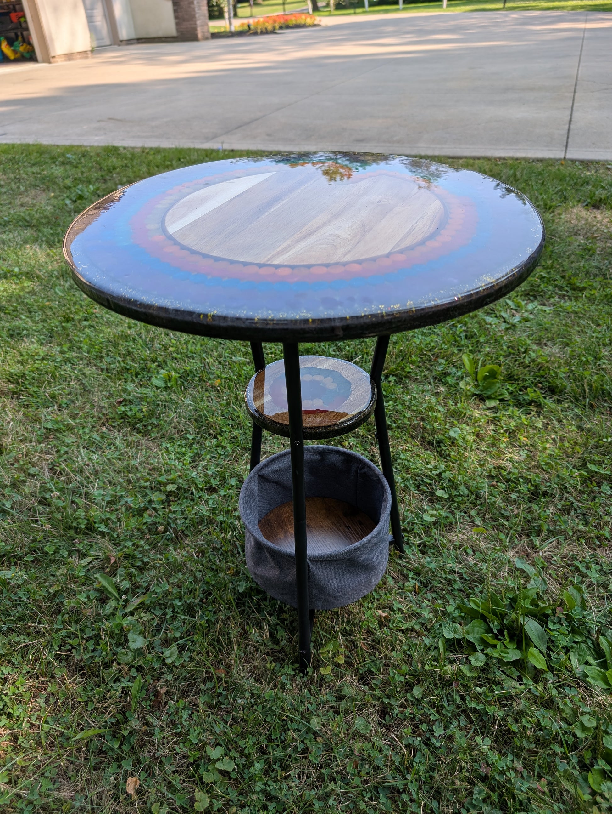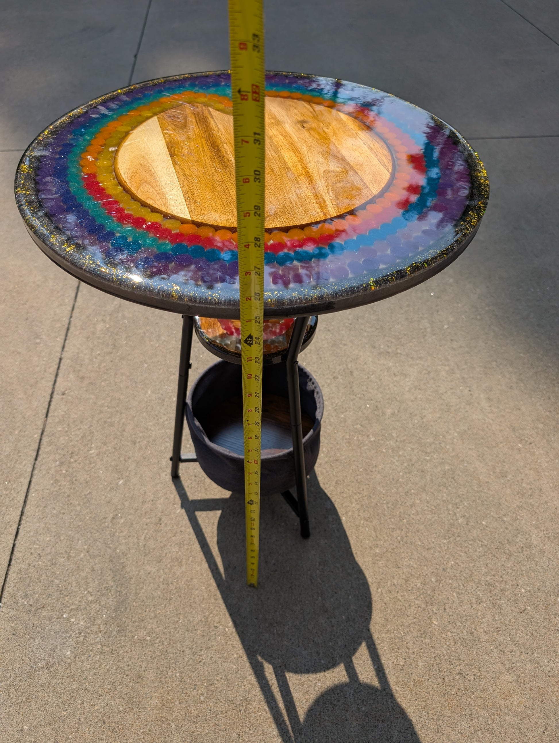 Experience touch of luxury with our Epoxy and Wood Polkadot Table. With its elegant, modern design and distinctive polkadot pattern, this table adds both style and charm to any space. Measuring at 19.5 inches in diameter and 25 inches in height, with matching stand. It's perfect as an end table or small coffee table. Elevate your home decor with this unique and versatile piece.