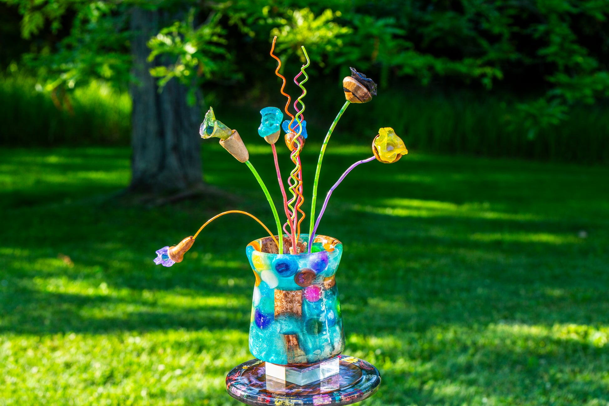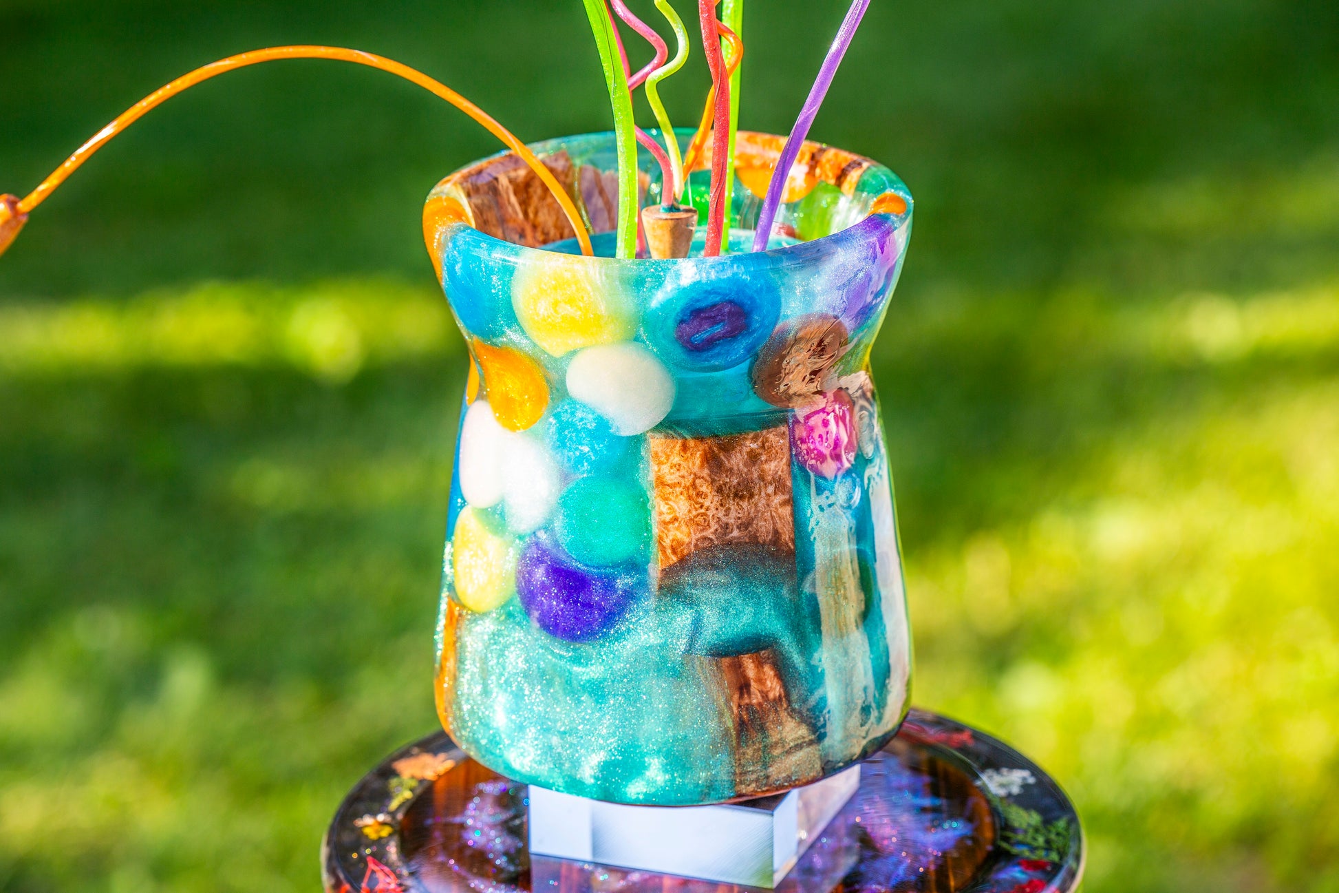 Epoxy vase with wood and epoxy flowers