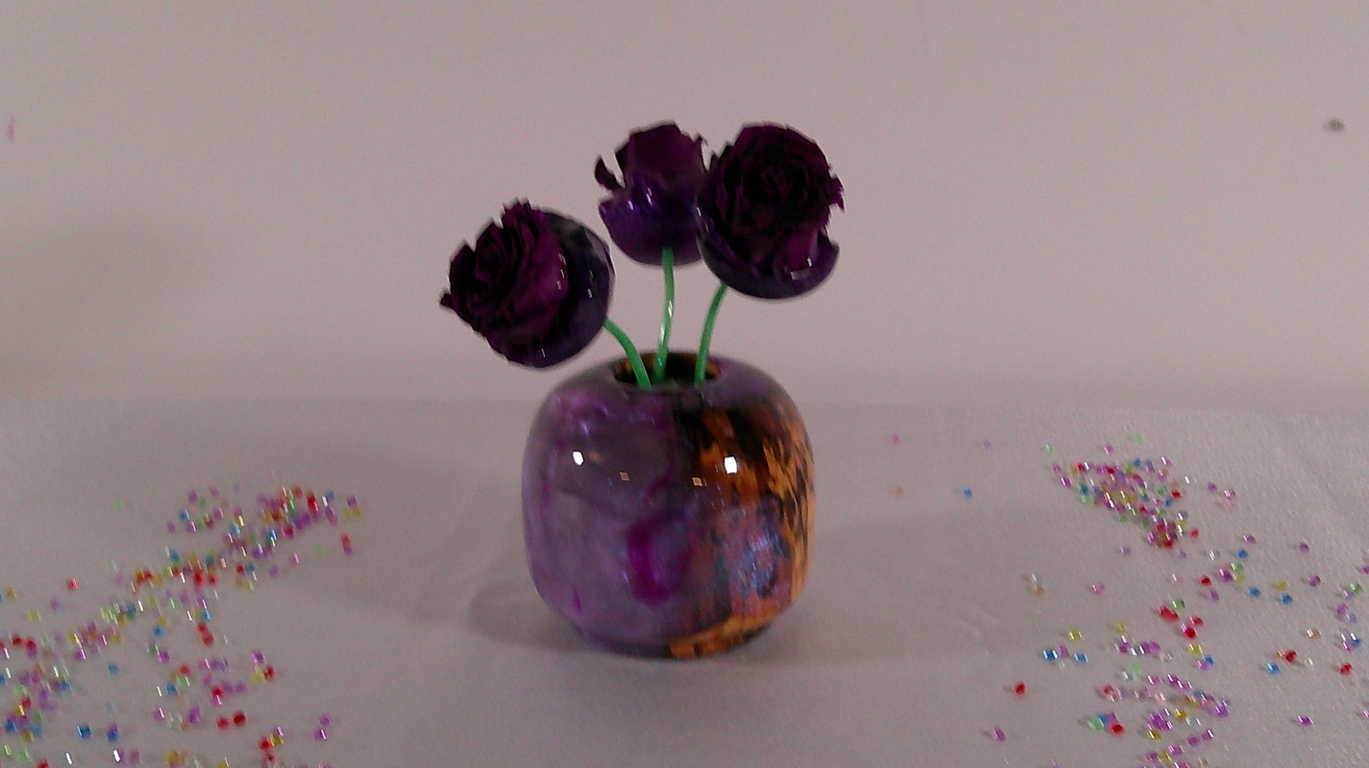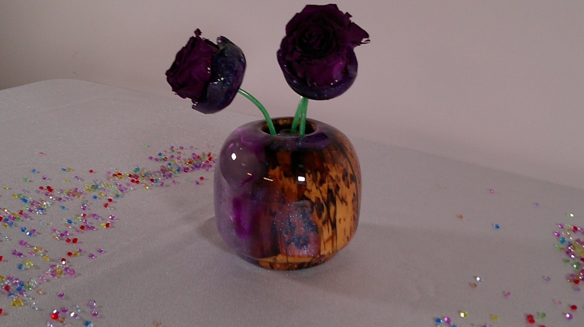 This is beautiful vase made of wood an epoxy with 3 real preserved roses trimmed with epoxy. Roses can be easily removed and changed for any other flowers, including live flowers.