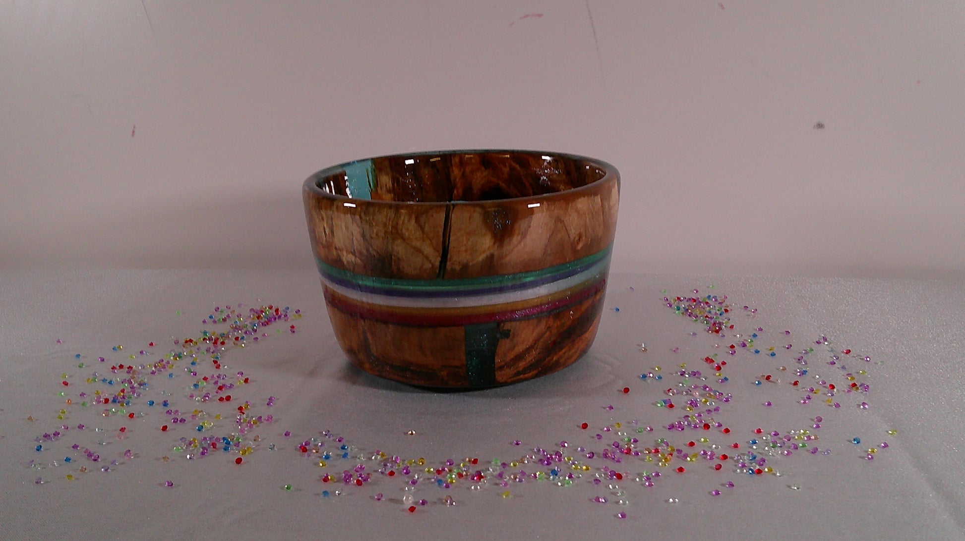 Beautiful one of the kind bowl made of cherry wood with epoxy resin, eye catching design, food safe, for cold food. Not for microwave or dish washer.