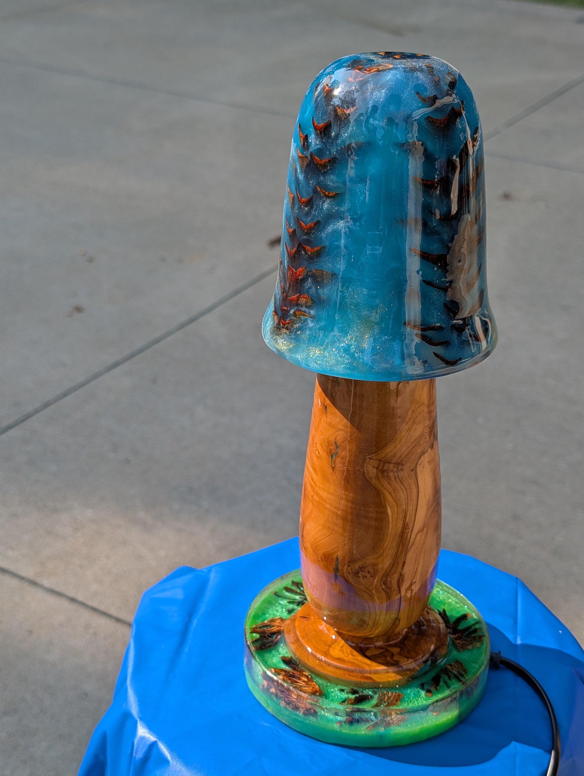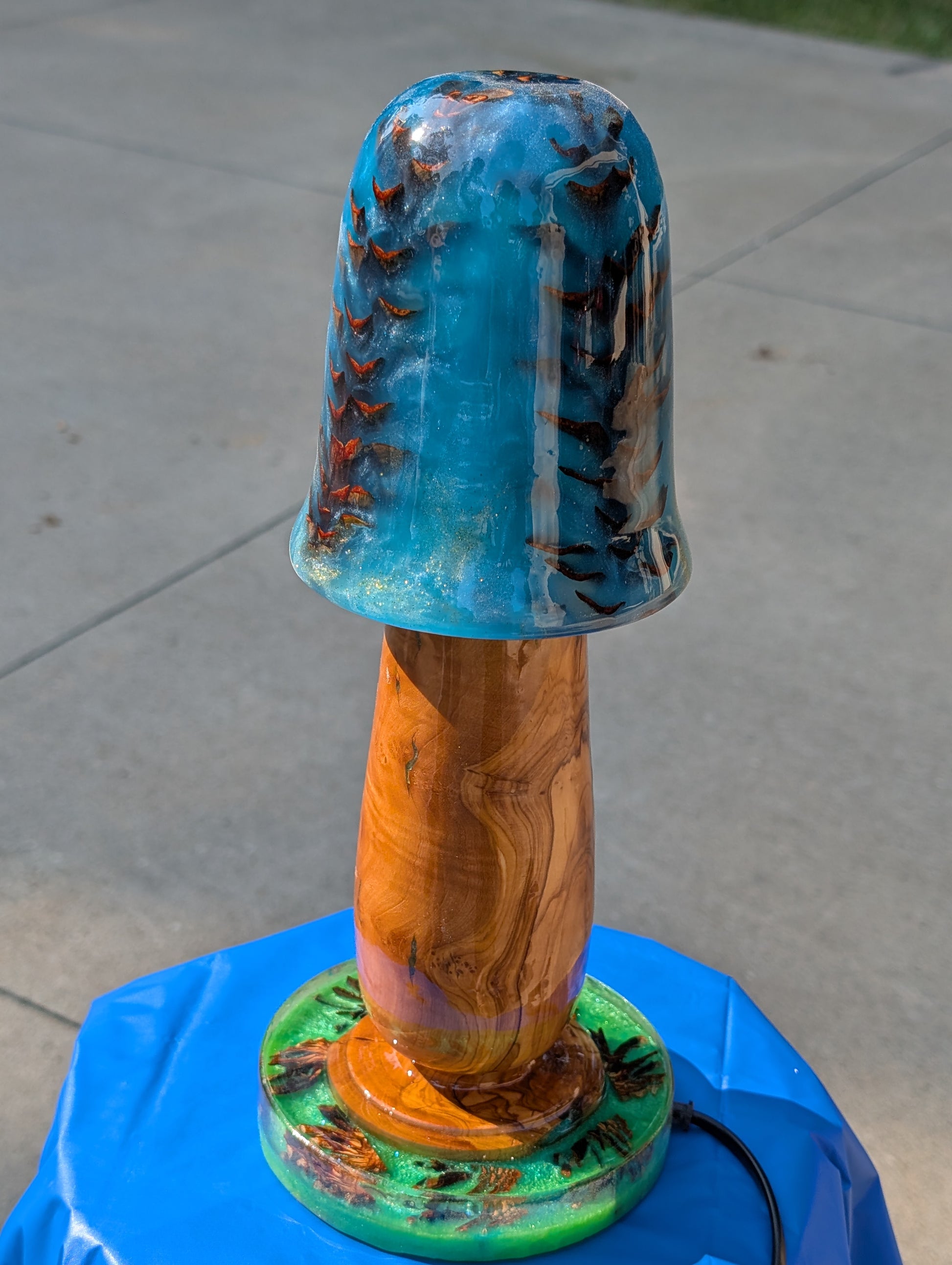 Introduce a touch of natural beauty to your bedroom with our Mushroom night light. Made with epoxy resin, olive wood and adorned with real pine cones, this charming light exudes tranquility and serenity. Let its gentle glow create a calm and serene ambience, bringing a sense of beauty and peace to your sleep space.